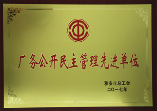 7月13日,市總工會(huì)組織召開(kāi)了雅安市廠務(wù)公開(kāi)民主管理專(zhuān)題培訓(xùn)會(huì),會(huì)上對(duì)全市廠務(wù)公開(kāi)民主管理示范單位先進(jìn)單位和示范班組進(jìn)行了表彰,我公司被評(píng)為“全市廠務(wù)公開(kāi)民主管理先進(jìn)單位”,充分肯定了我公司廠務(wù)公開(kāi)民主管理工作。