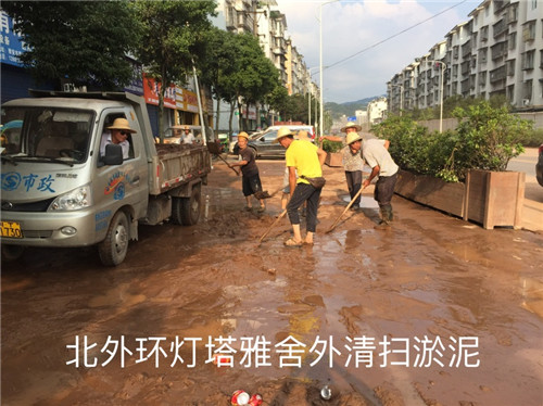 二是上下聯(lián)動,奮力除險,全力保障群眾安全。由于雨量過大,康藏路消防隊門口主干道積水達(dá)70厘米深,道路中斷,公司搶險分隊組織隊員冒雨對排水口進(jìn)行疏通,以最快速度恢復(fù)道路通行;北外環(huán)青鼻山隧道外大量塌方,搶險分隊立即在此處設(shè)置警示標(biāo)識,并調(diào)配裝載機(jī)對塌方進(jìn)行清理,確保道路恢復(fù)正常通行。