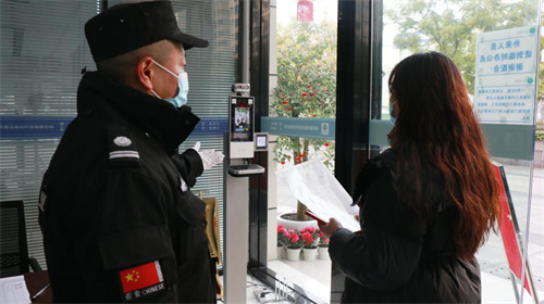 此次演練設(shè)定在上午9點,城投公司辦公樓入口,被紅外線體溫儀檢測出一名體溫異常的辦事人員,且檢查健康碼顯示黃碼。
