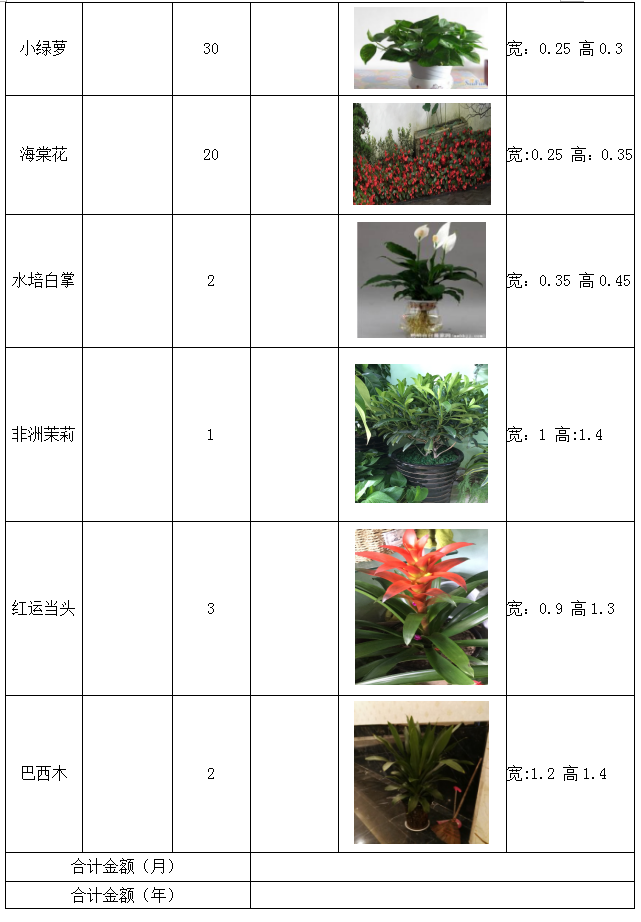 城投公司下屬子公司新辦公樓綠色植物租賃詢價函