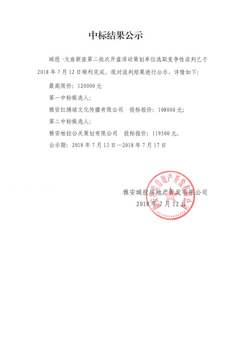 城投·文曲新座第二批次開(kāi)盤(pán)活動(dòng)競(jìng)爭(zhēng)性談判中標(biāo)結(jié)果公示
