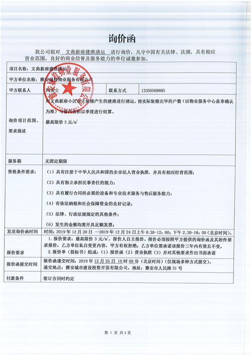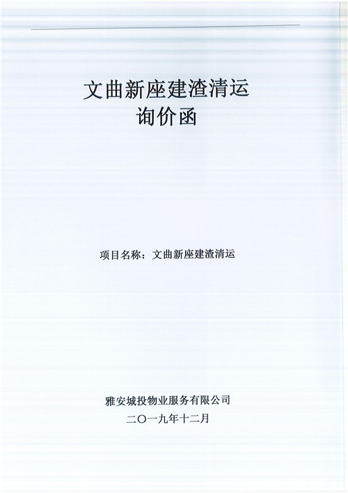 文曲新座建渣清運(yùn)詢(xún)價(jià)函