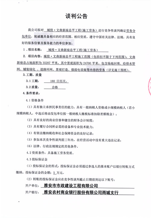 城投·文曲新座總平工程(施工勞務(wù))競爭性談判公告