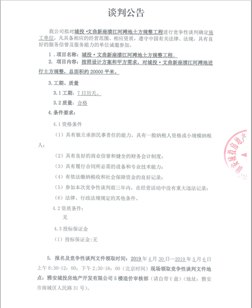 城投·文曲新座濆江河灘地土方規(guī)整工程談判公告