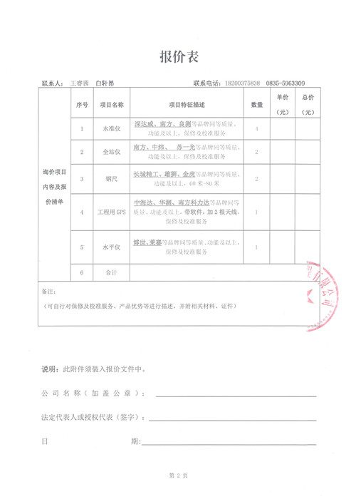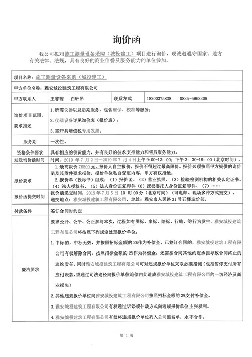 詢價(jià)函 施工測量設(shè)備采購(城投建工)