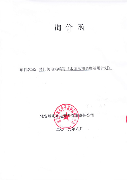 詢價函(《水庫汛期調(diào)度運用計劃》)