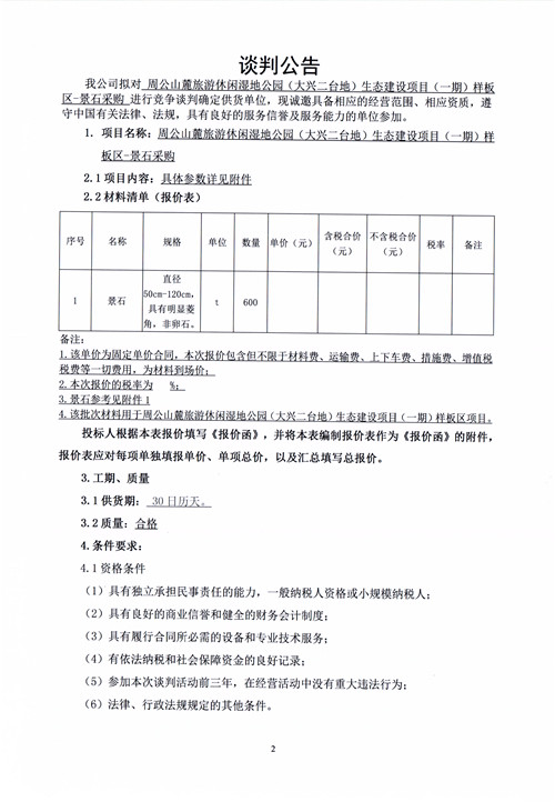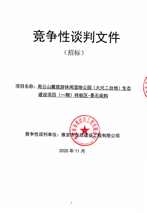 市政公司周公山麓旅游休閑濕地公園(大興二臺地)生態(tài)建設(shè)項目(一期)樣板區(qū)-景石采購競爭性談判