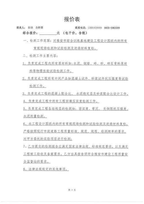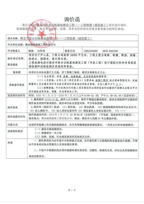 雅安市綜合訓(xùn)練基地建設(shè)工程——工程檢測(cè)詢(xún)價(jià)函(第二次)