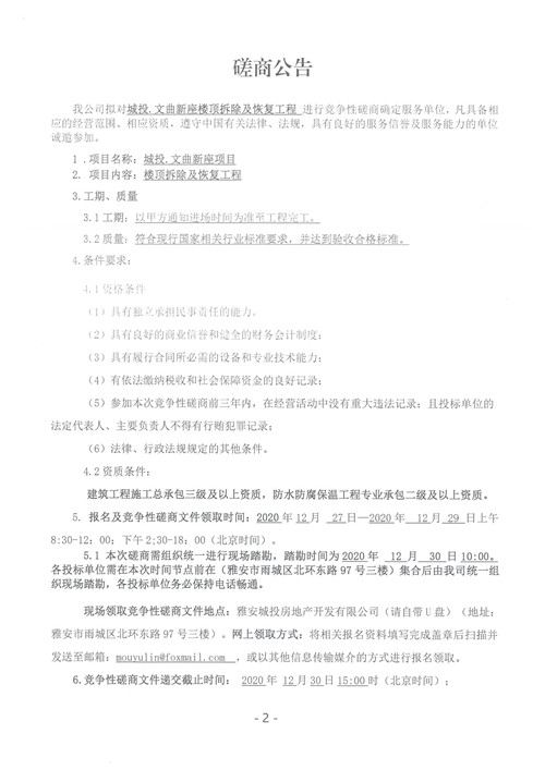 城投·文曲新座樓頂拆除及恢復(fù)工程競爭性磋商公告