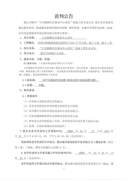城投建工“大興順路社區(qū)服務(wù)中心項(xiàng)目”保溫工程專業(yè)分包競(jìng)爭(zhēng)性談判公告