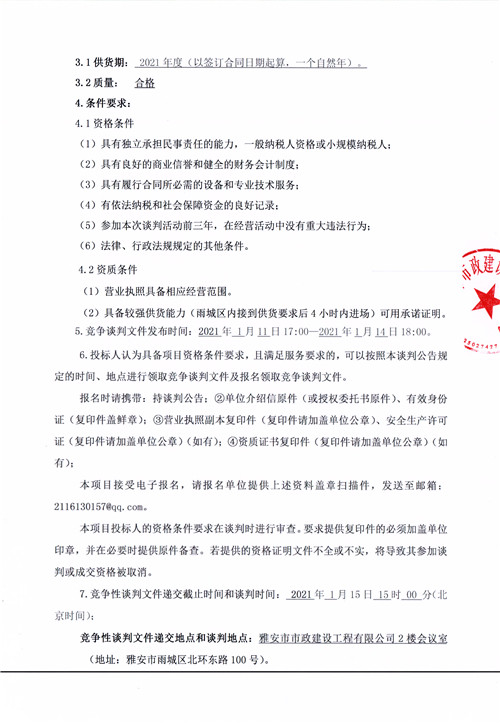 雅安市市政建設工程有限公司2021年井圈井蓋采購項目競爭性談判公告