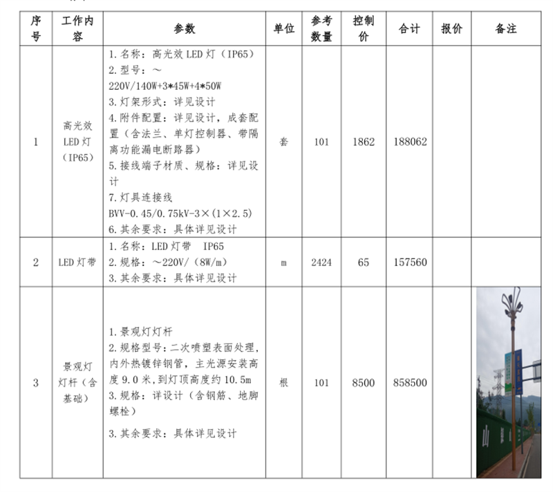 2.1項(xiàng)目?jī)?nèi)容:雅安文教新城市政道路恢復(fù)重建項(xiàng)目(一標(biāo)段)照明工程材料采購(gòu)供貨商的確定,保障市政公司相關(guān)工程的順利進(jìn)行,具體貨物見(jiàn)材料清單(本招標(biāo)文件所附清單(數(shù)量、規(guī)格、種類(lèi))僅供參考,最終采購(gòu)數(shù)量實(shí)際發(fā)生(分散采購(gòu))的為準(zhǔn))。