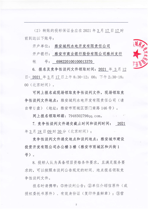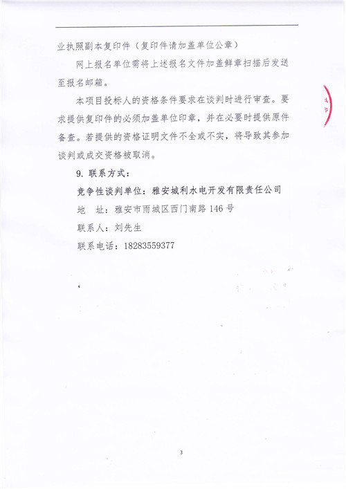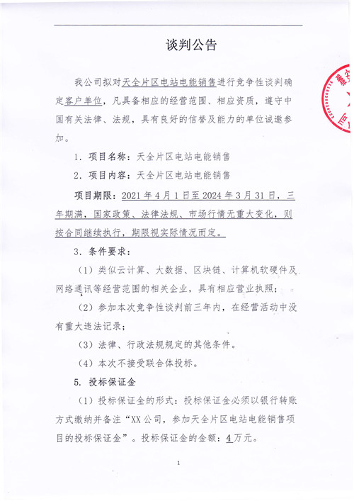 城投水電公司天全片區(qū)電站電能銷售競爭性談判公告