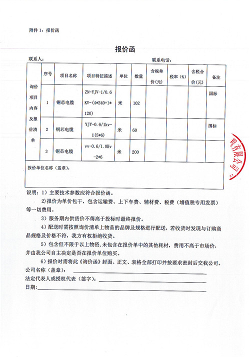 雅安市生活垃圾收轉(zhuǎn)運(yùn)體系建設(shè)姚橋垃圾壓縮中轉(zhuǎn)站項(xiàng)目電纜采購(gòu)詢價(jià)函