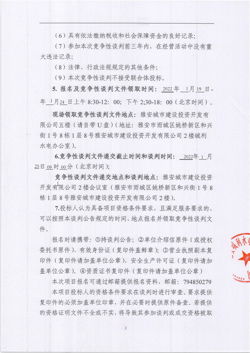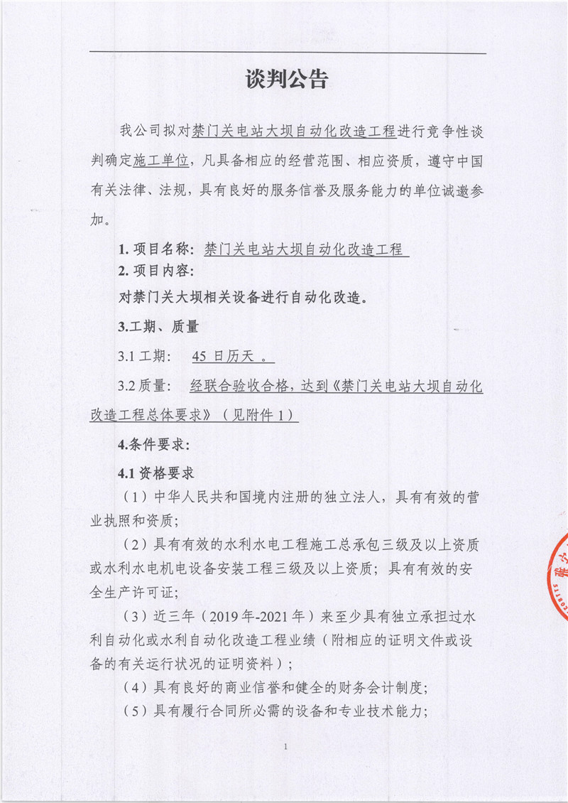 雅安城利水電公司禁門關(guān)電站大壩自動(dòng)化改造工程競(jìng)爭(zhēng)性談判公告