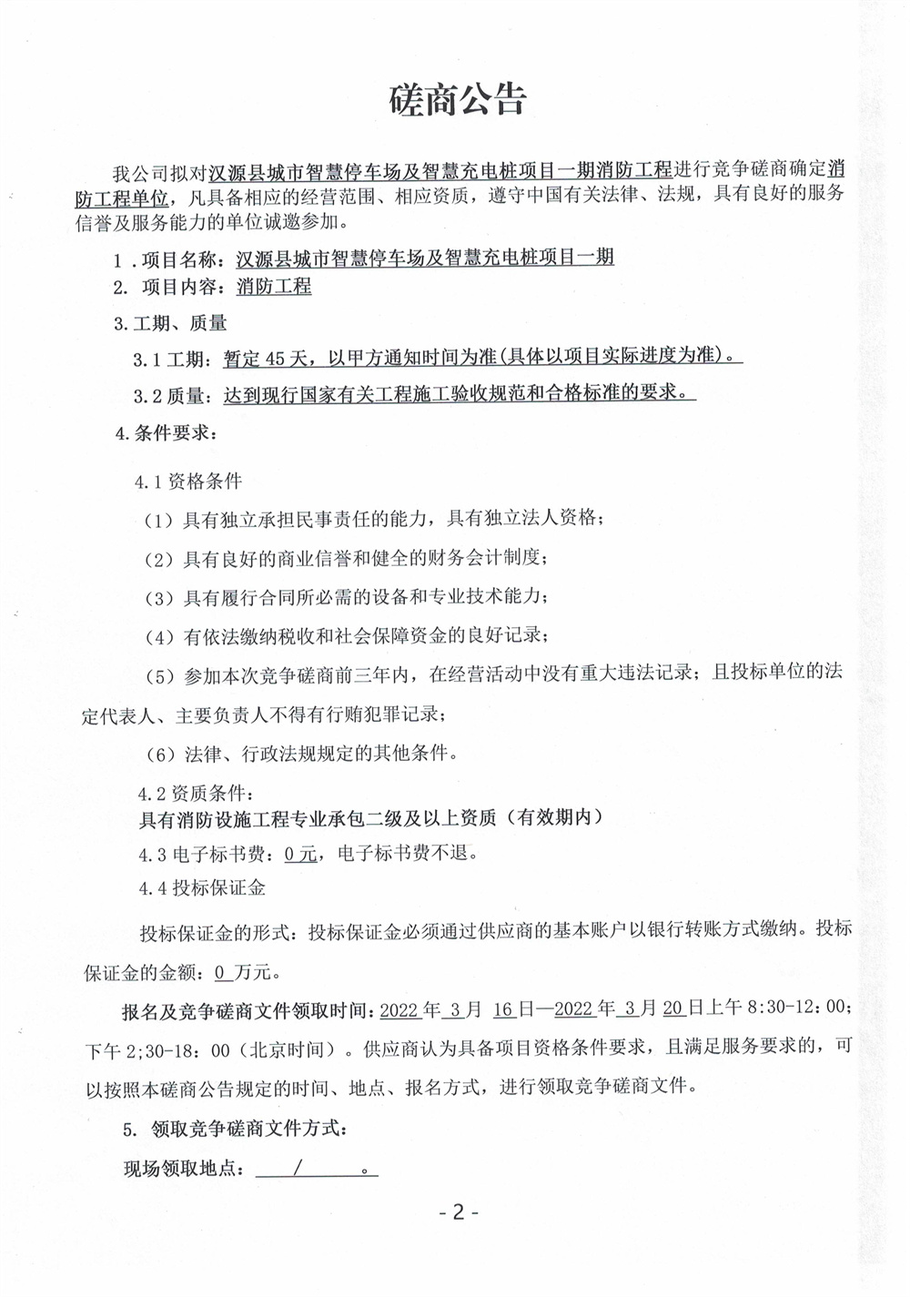 漢源縣城市智慧停車場及智慧充電樁項(xiàng)目一期消防工程磋商公告