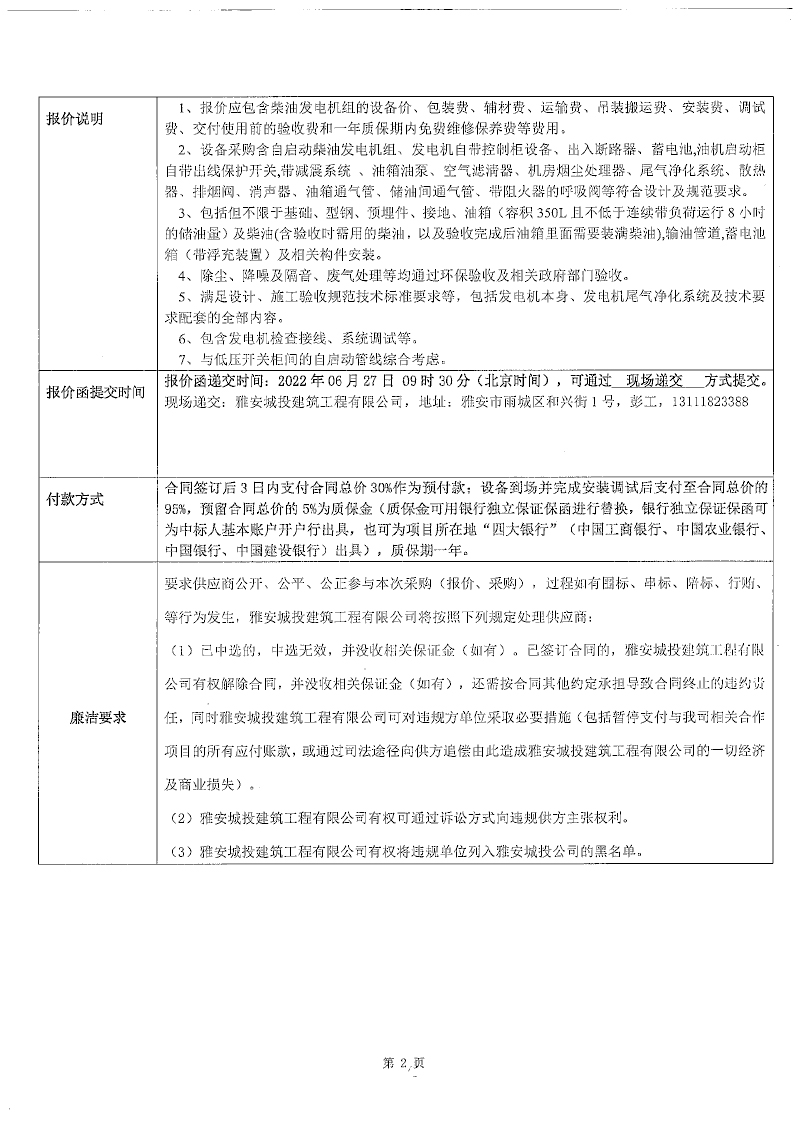 漢源縣城市智慧停車場及智慧充電樁項目一期漢源縣城人民銀行大型綜合樓停車樓建設(shè)項目500kw柴油發(fā)電機(jī)組設(shè)備采購競價公告