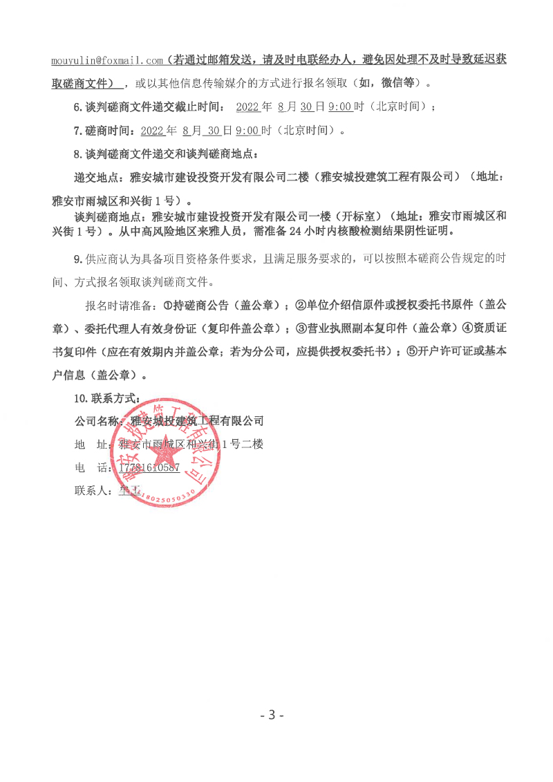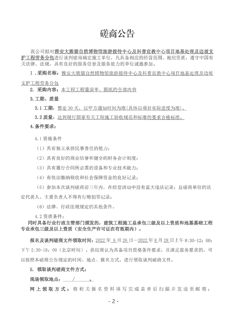 雅安大熊貓自然博物館旅游接待中心及科普宣教中心項目地基處理及邊坡支護工程談判磋商公告