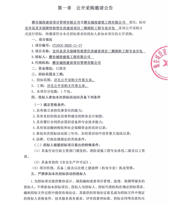 寶興縣靈關(guān)保障性租賃住房建設(shè)項(xiàng)目二期消防工程專業(yè)分包公開(kāi)采購(gòu)邀請(qǐng)公告