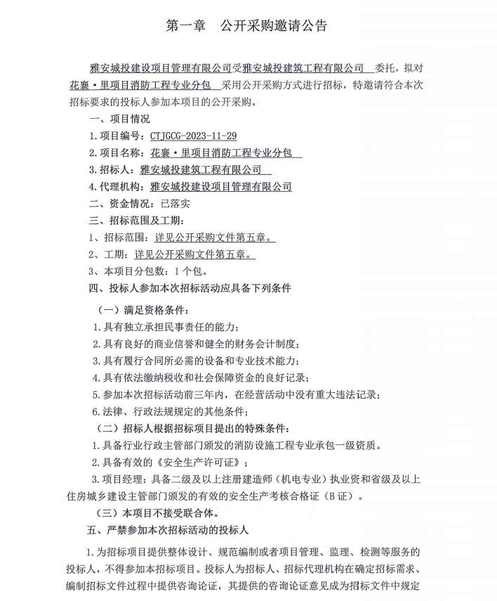 花襄·里項(xiàng)目消防工程專業(yè)分包公開采購邀請(qǐng)公告