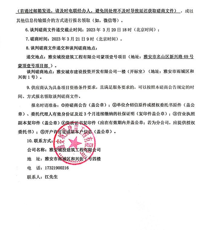 蒙頂壹號項目亮化工程建設采購磋商公告