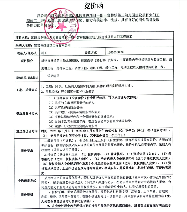 漢源縣鄉(xiāng)鎮(zhèn)幼兒園建設(shè)項(xiàng)目一期一富林鎮(zhèn)第三幼兒園建設(shè)項(xiàng)目大門工程施工競價公告