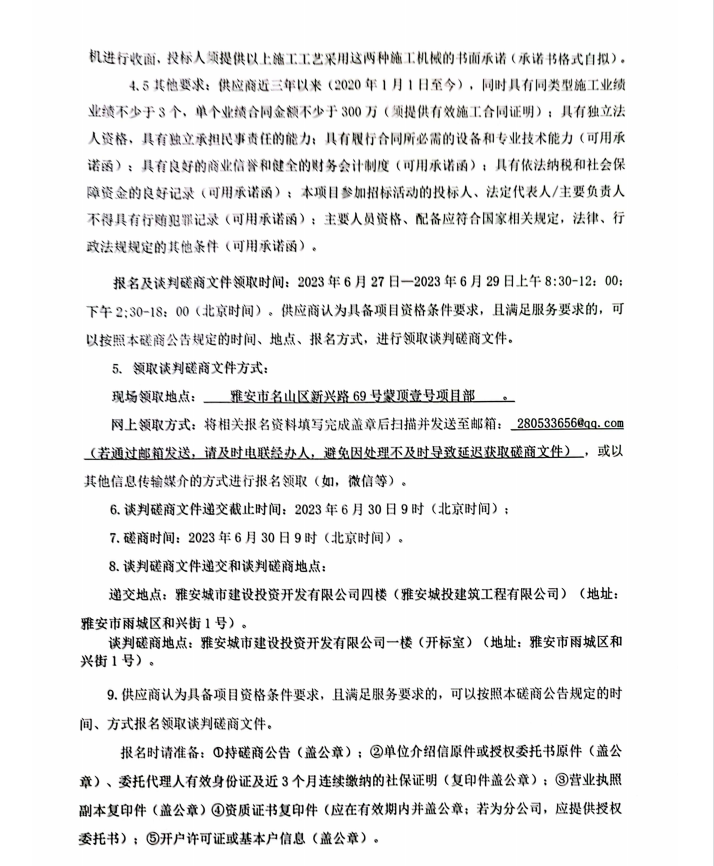 蒙頂壹號項目地下室車庫裝飾工程建設采購談判磋商公告