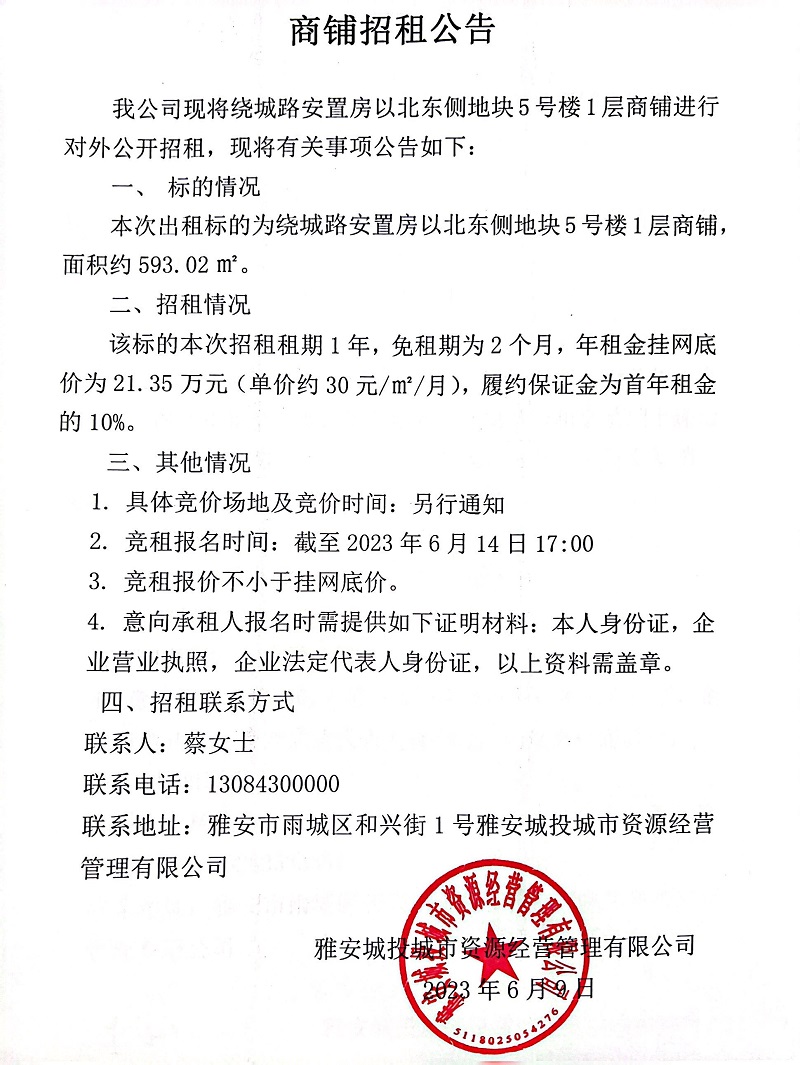 繞城路安置房以北東側(cè)地塊5號(hào)樓1層商鋪招租公告