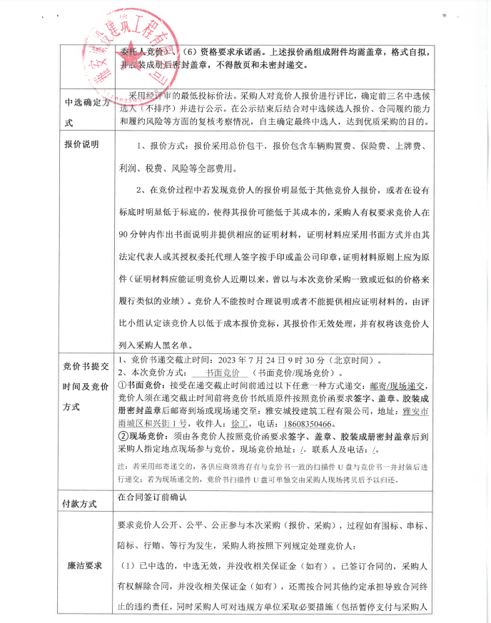 雅安城投建筑工程有限公司業(yè)務(wù)用車采購競價公告