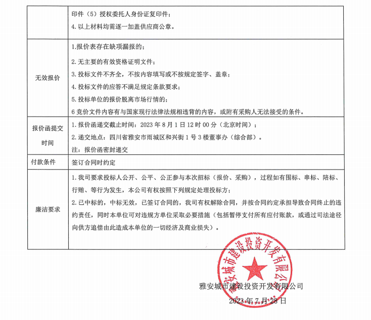 雅安城市建設(shè)投資開發(fā)有限公司清潔用品采購項目(第二次)競價公告
