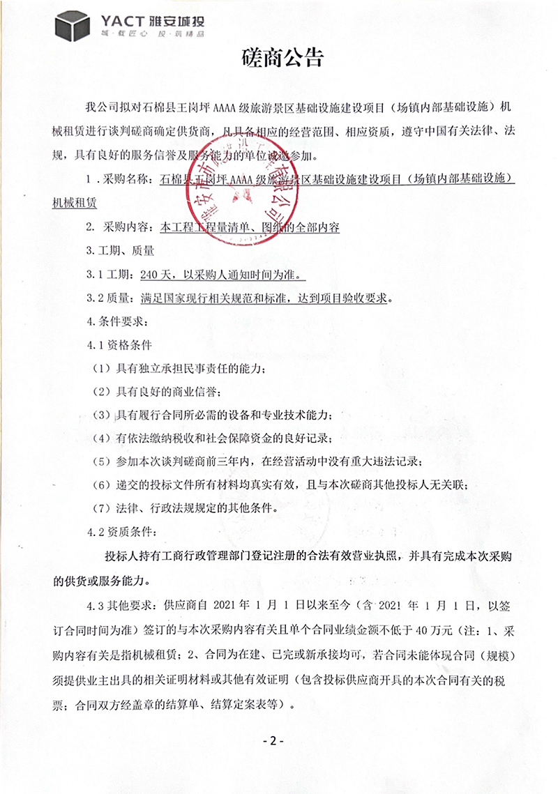 石棉縣王崗坪AAAA級旅游景區(qū)基礎(chǔ)設(shè)施建設(shè)項目(場鎮(zhèn)內(nèi)部基礎(chǔ)設(shè)施)機械租賃