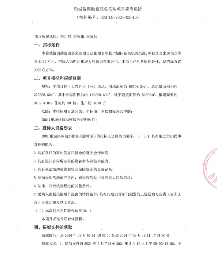 雅城格調(diào)勘察服務(wù)采購(gòu)項(xiàng)目磋商邀請(qǐng)公告