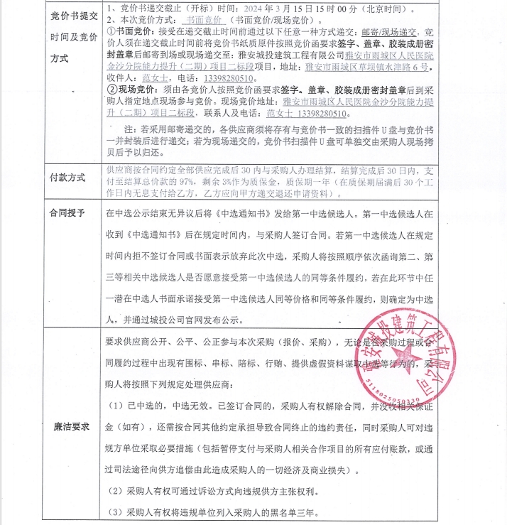 雅安市雨城區(qū)人民醫(yī)院金沙分院能力提升(二期)項目二標(biāo)段地磚采購競價公告