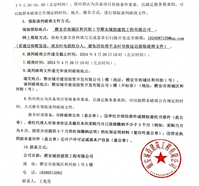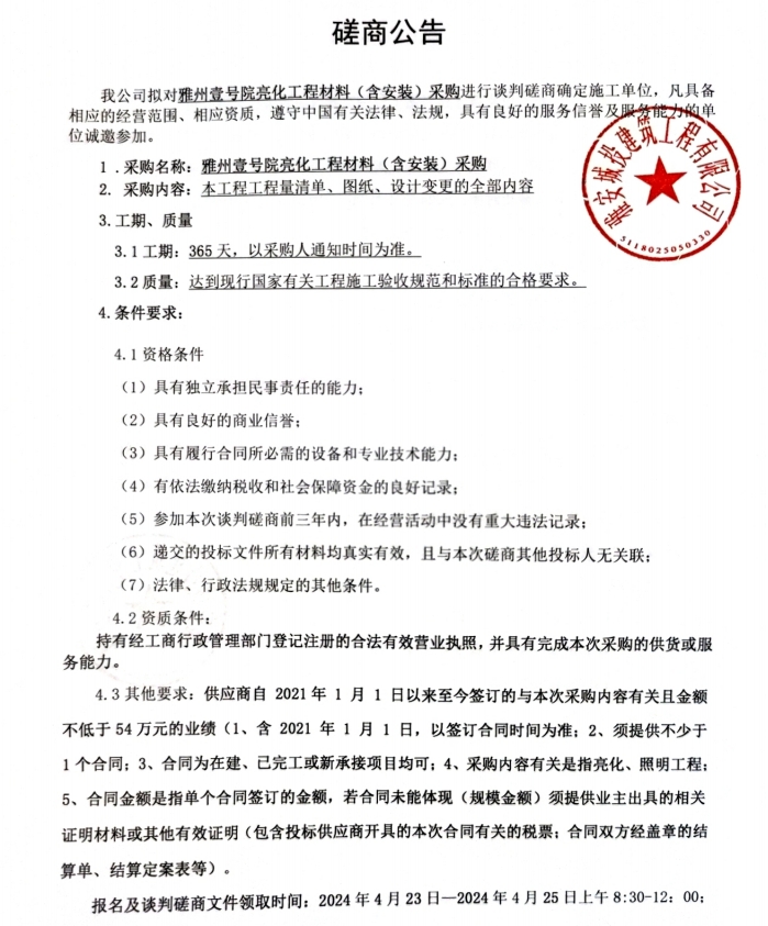 雅州壹號院亮化工程材料(含安裝)采購磋商公告