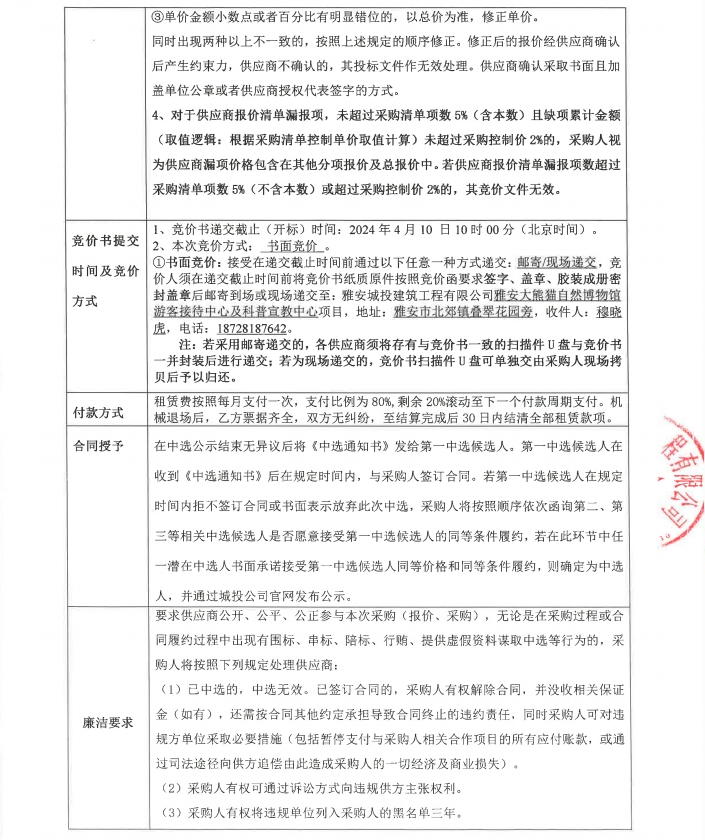 雅安大熊貓自然博物館游客接待中心及科普宣教中心項目室外附屬工程開挖及回填機械租賃和連砂石采購競價公告