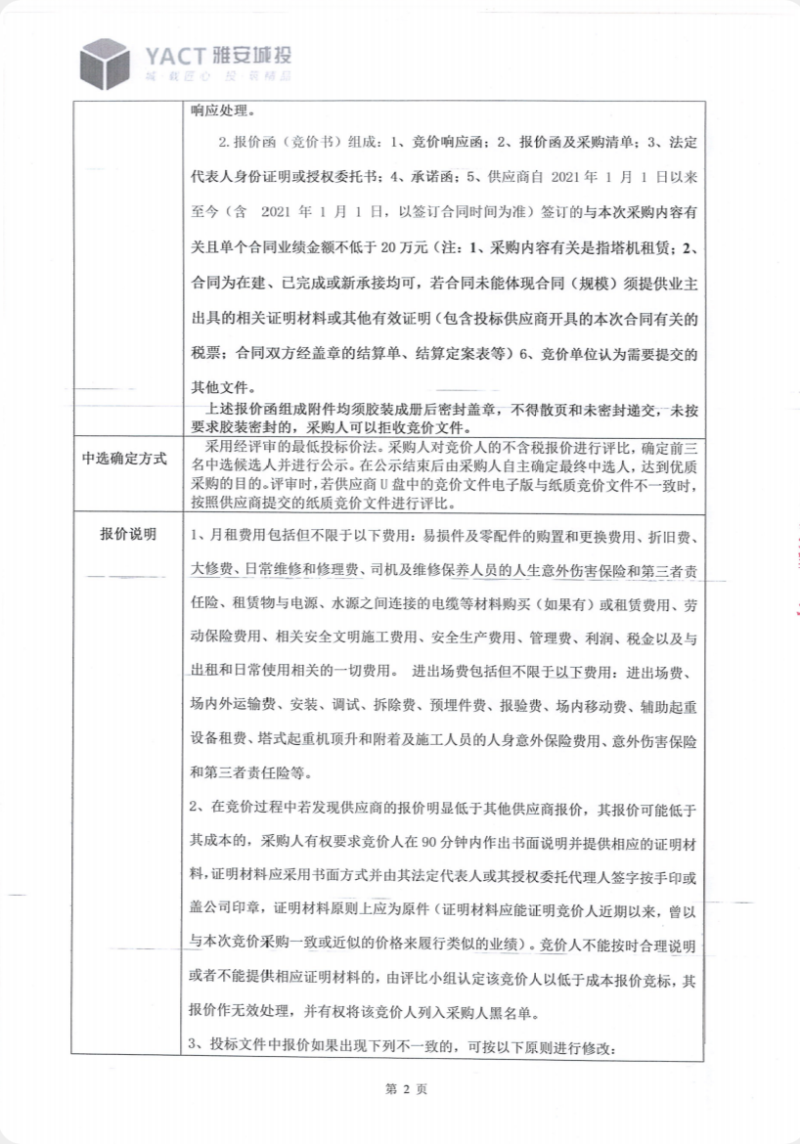 石棉縣大熊貓國家公園保護(hù)管理設(shè)施項(xiàng)目(一期)塔機(jī)租賃(第二次)競(jìng)價(jià)公告