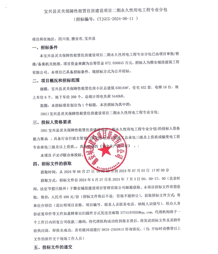 寶興縣靈關(guān)保障性租賃住房建設(shè)項(xiàng)目二期永久性用電工程專業(yè)分包公告