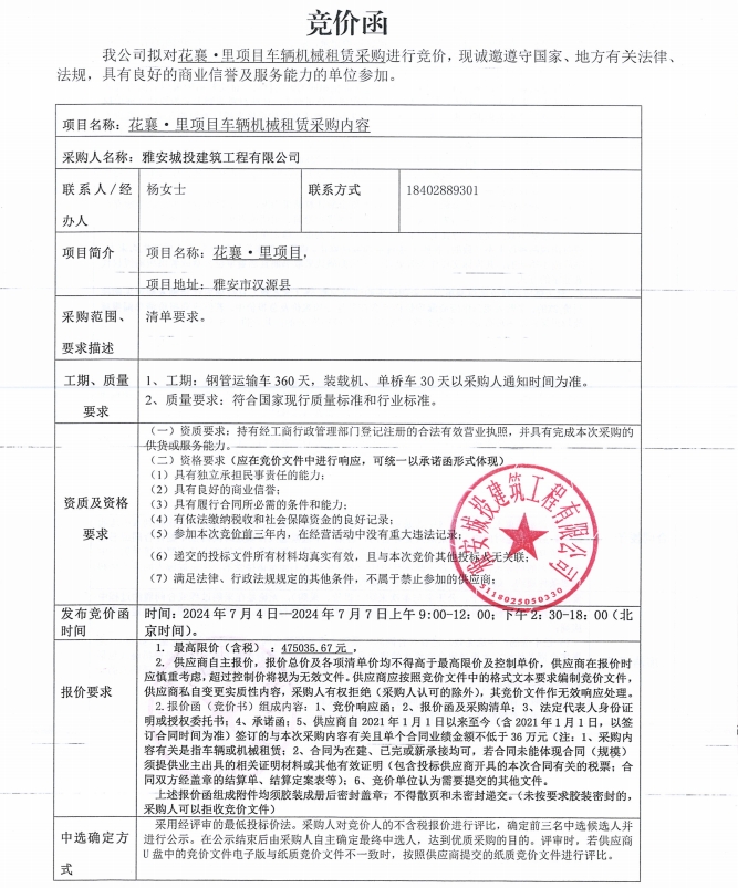 花襄·里項(xiàng)目車輛機(jī)械租賃采購(gòu)競(jìng)價(jià)公告