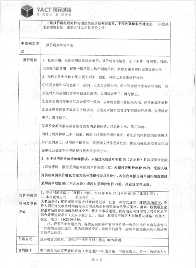 雅安市大興片區(qū)地下綜合管廊建設(shè)項目第二批廢棄鋼筋出售競價公告