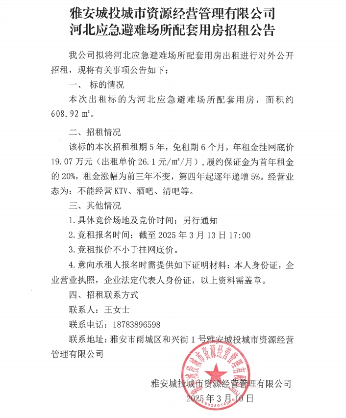 河北應(yīng)急避難場所配套用房招租公告