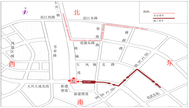 6.大興二橋通行貨車:大興二橋-思源東路-春暉路-濱江東路-農(nóng)博城